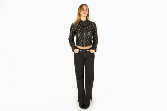 SAVE 50%Gold Eyelet Leather Jacket
