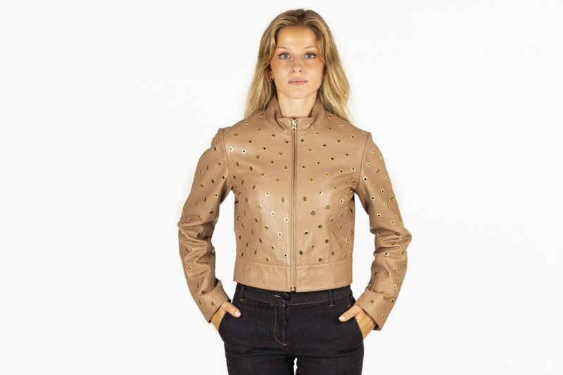 - Fit: Slim cropped fit with a structured silhouette and metallic eyelet detailing.