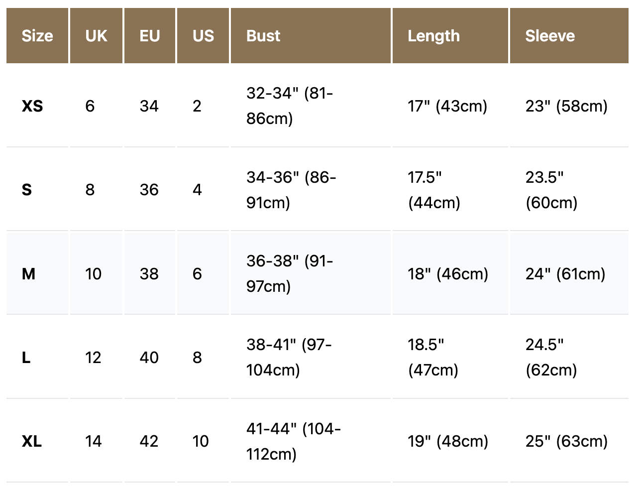 Size chart